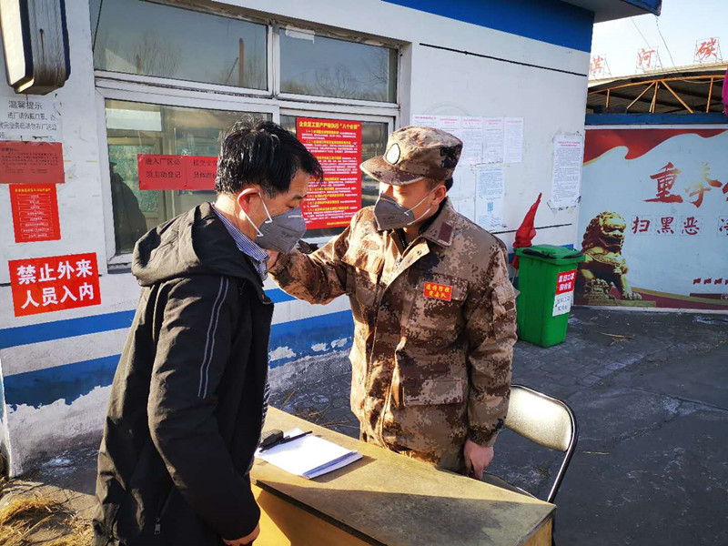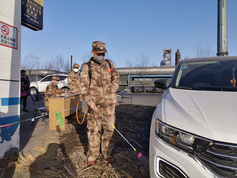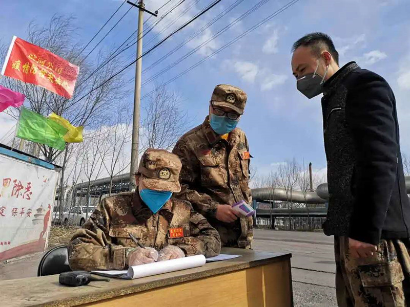 “請(qǐng)靠邊停車,我們需要給車輛消毒,請(qǐng)您下車做詳細(xì)登記并測(cè)量體溫?!?1點(diǎn)半不是上下班時(shí)間,雖然偶有人車進(jìn)出,但郗余亮?xí)r刻堅(jiān)守在刺骨的寒風(fēng)中,檢查過往人員和車輛,嚴(yán)格執(zhí)行公司對(duì)新冠肺炎疫情防控的各項(xiàng)要求?!耙咔楫?dāng)前,我作為公司員工,又是民兵,有責(zé)任也有義務(wù)沖鋒在前保護(hù)全廠員工和企業(yè)的安全,為了早日戰(zhàn)勝疫情,再苦再累我都能克服。”郗余亮說。